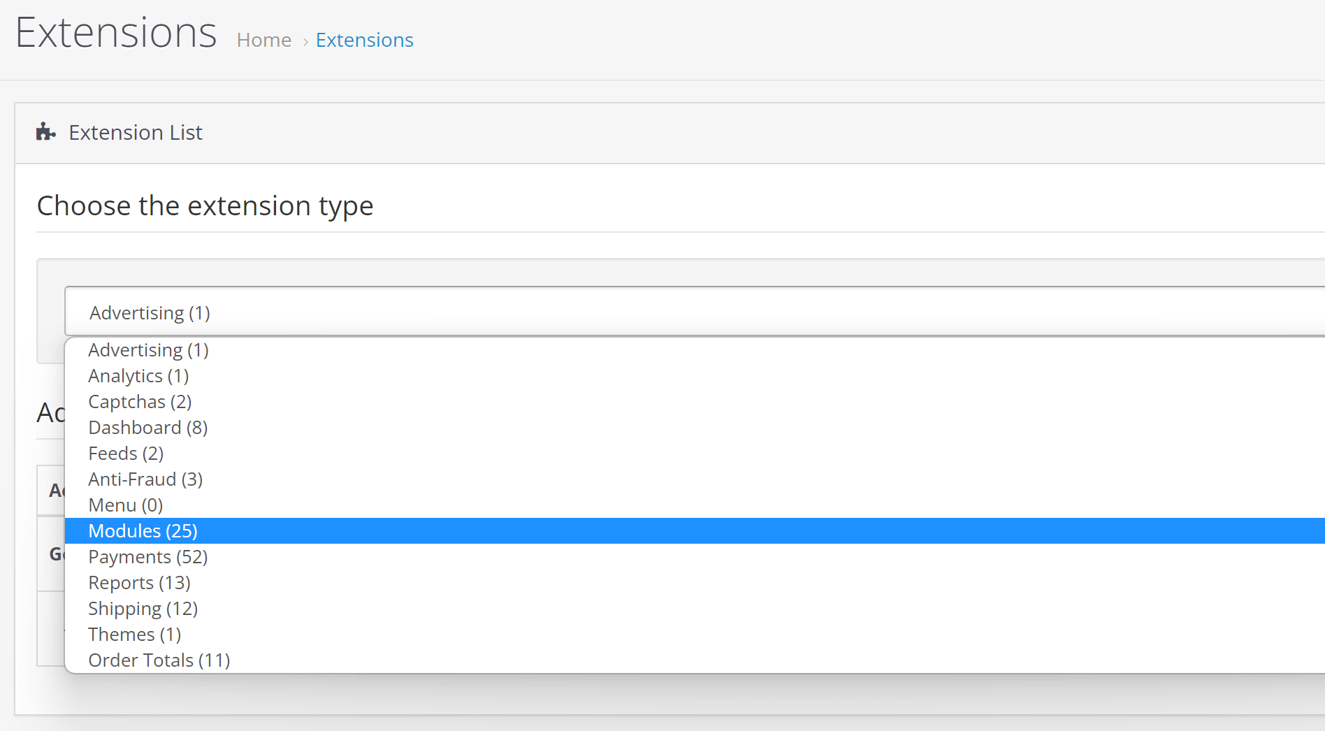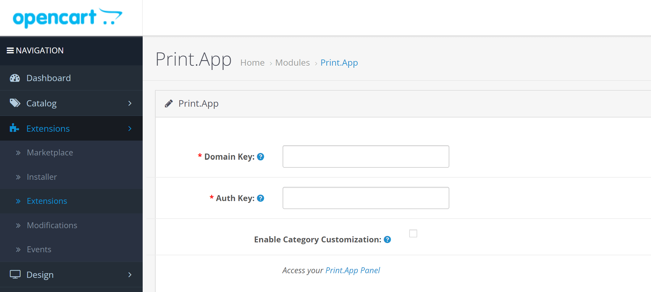 To enter the keys in your OpenCart admin, navigate to Extensions and drop down the