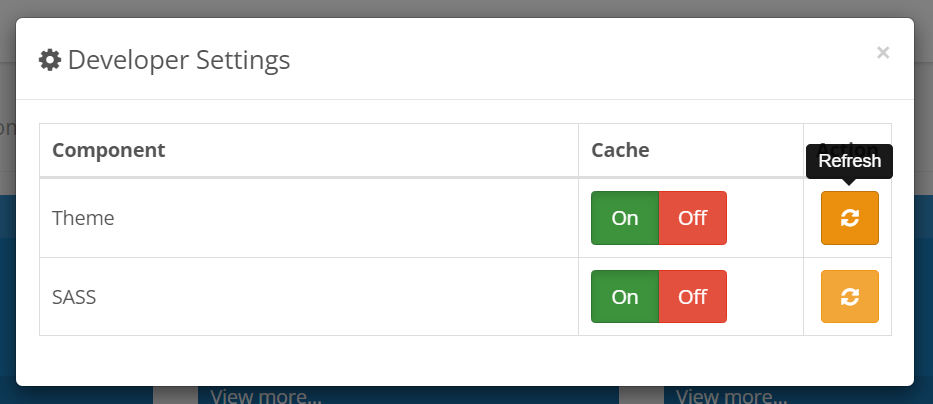 Dashboardand click the settings icon shown belowThat should open the developer settings. Click the Theme and SASS refresh buttons to update the theme files.